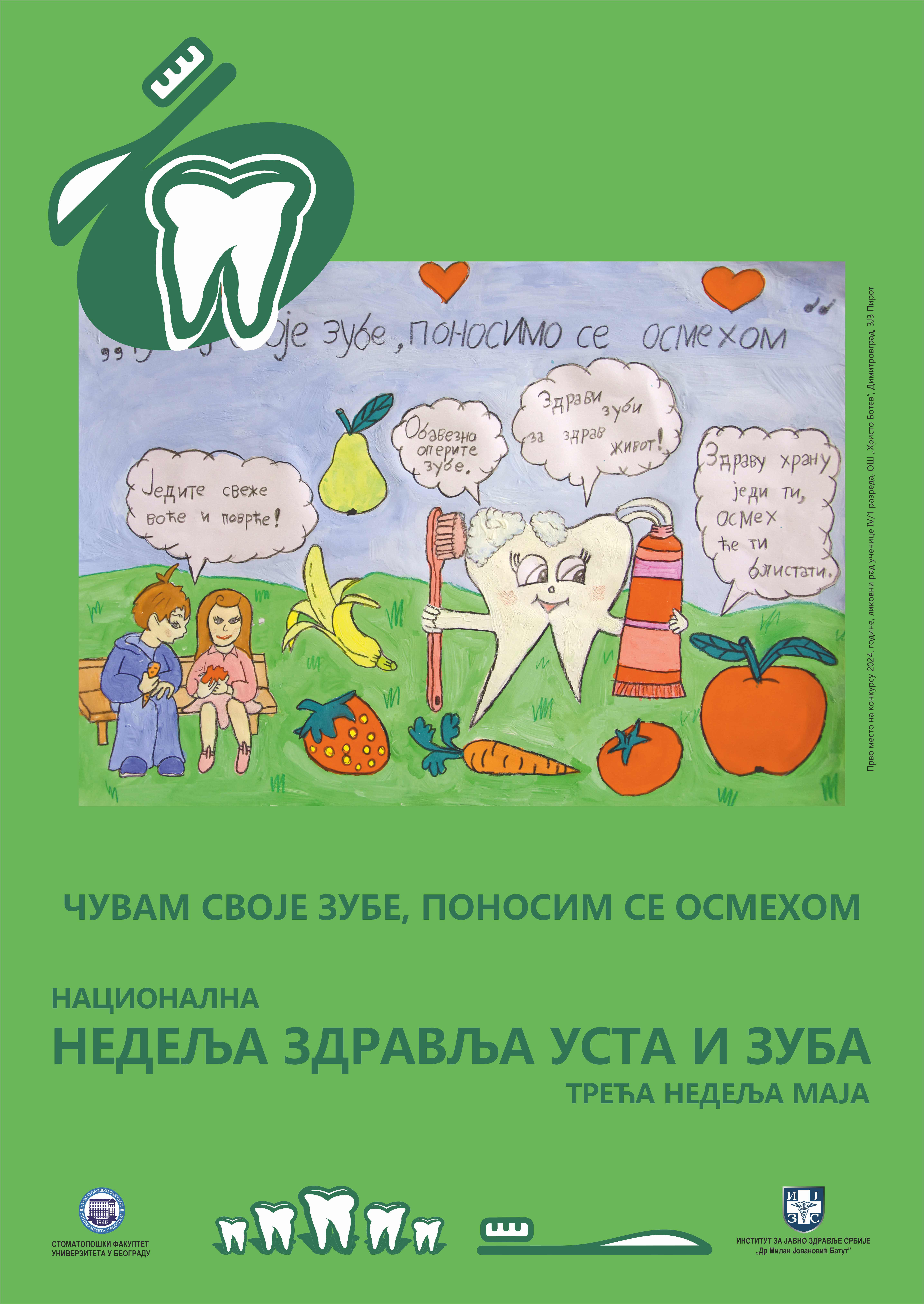 У оквиру Кампање се организује конкурс за избор најбољих литерарних састава и ликовних радова намењен деци у вртићима и ученицима основних школа у Републици Србији који има за циљ подстицање здравственоваспитног рада у вртићима и основним школама на тему оралног здравља.